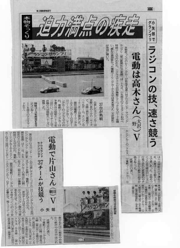 一方、田宮大会は毎年大盛況なのに取材が来たためしがない。種あかしをすると、後援しているのは富山新聞社。だからこその記事である。ドライバーズミーティング時に場違いな新聞社重役の挨拶があり(それはそれは異様な光景で毎回参加者全員が凍ってしまうほどだ。)なぜラジコンレースを後援するのか?このレースを大きくとりあげる事にどれほどの意味があるのか?しかもどうして県内のレースの運営をチャンピオン金沢模型の店長さんに依頼してしまうのか?底しれぬ疑問を投げかける。富山県人のミステリアスな精神風土が全面ににじみ出る記事。