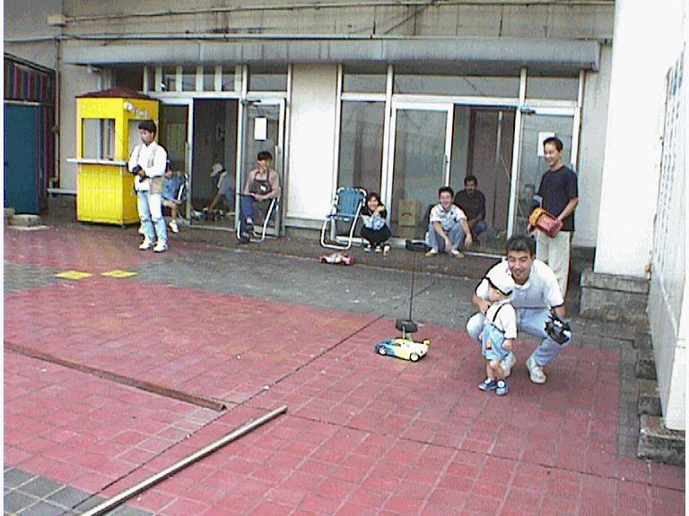 未来の名ドライバーもラジコンに興味津々?(三橋(宣)選手のお子さんです)