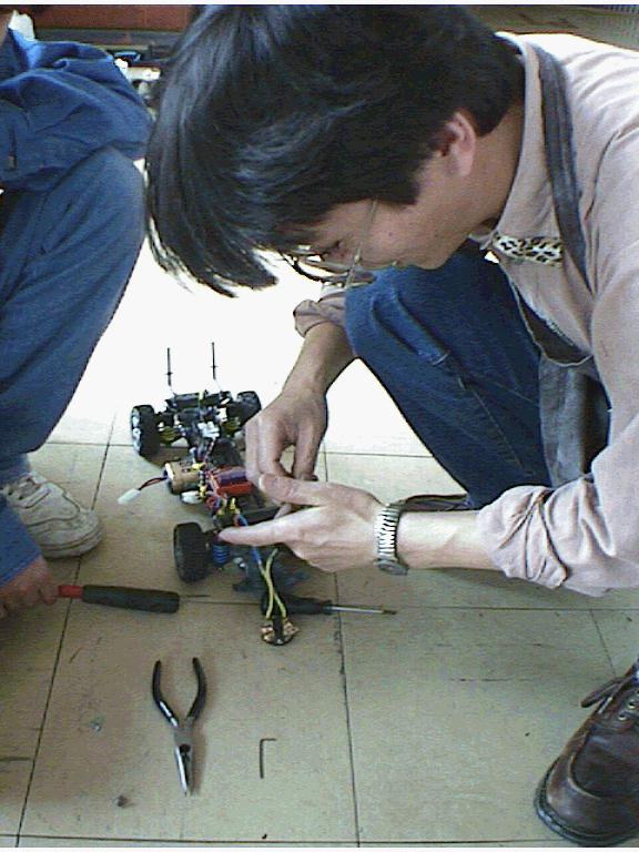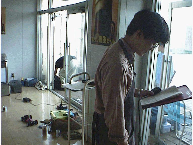 レースは、屋上用にTA02を引っ張りだしてきた荒金選手が、ネットワークGPでBメインの意地を見せ、33周のグランプリ新記録で優勝。自作パーツ満載のTF-2で挑んだ福多選手は、バッテリーを忘れて取りに帰るという大失態。準備不足のバチが当たって、これも新記録になる32周ながら2位。Bメインには、新鋭TA03も登場してタイル路面に新たな可能性を示唆しました。